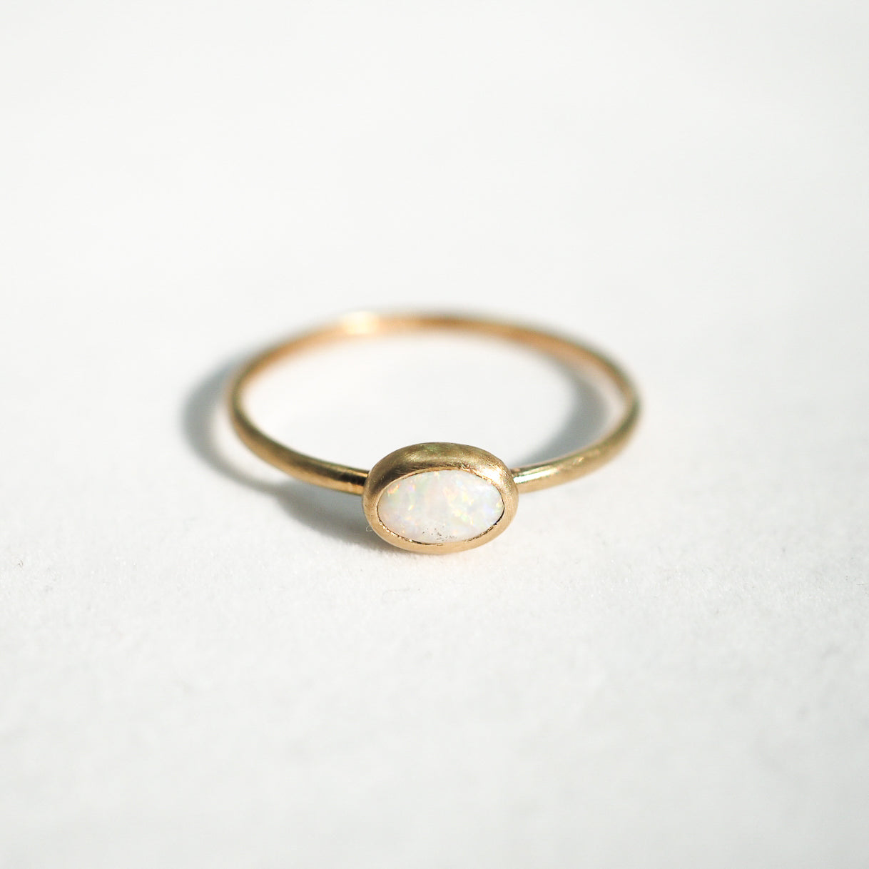 10k Gold White Opal Oval Stacking Ring