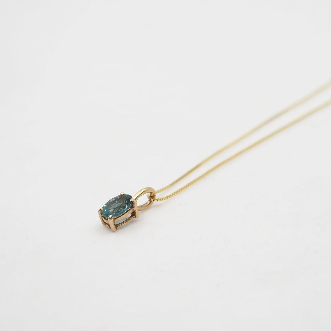 10k Gold Sunlight Necklace - Teal Green Tourmaline