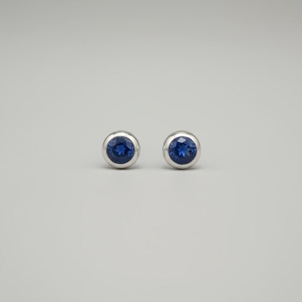 LFJ Sterling Silver Blue Sapphire Bezel Studs