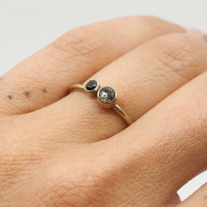 Salt & Pepper Diamond Ring w/ offset Centre Black Diamond