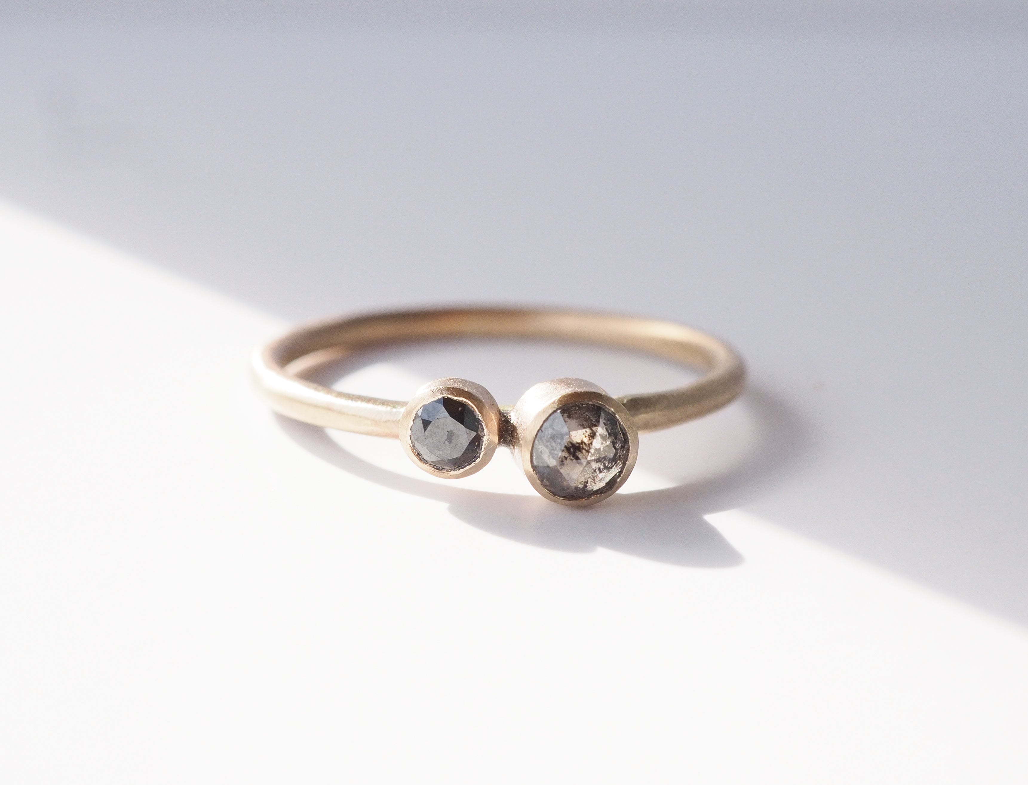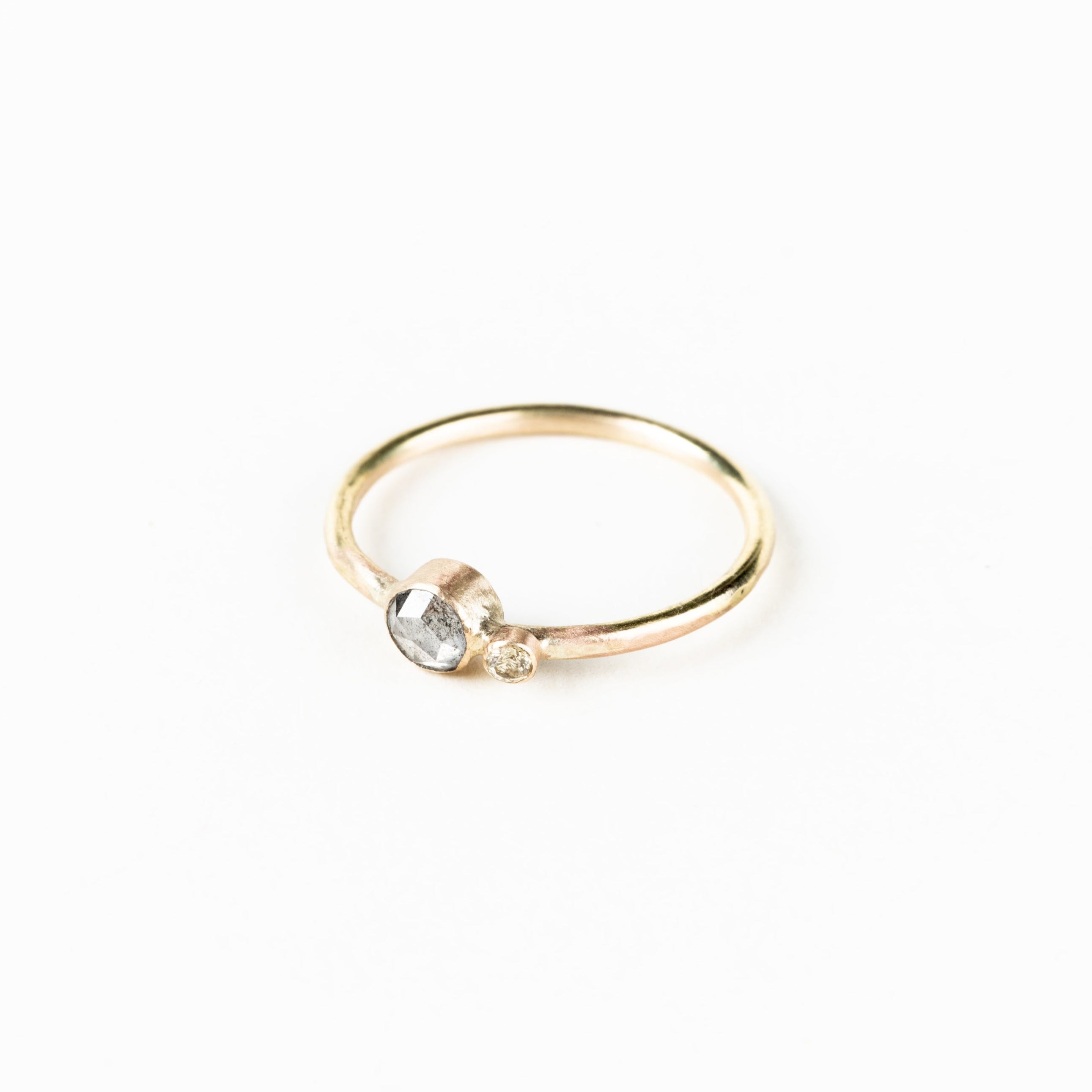 Salt & Pepper Diamond Ring with offset Champagne Diamond